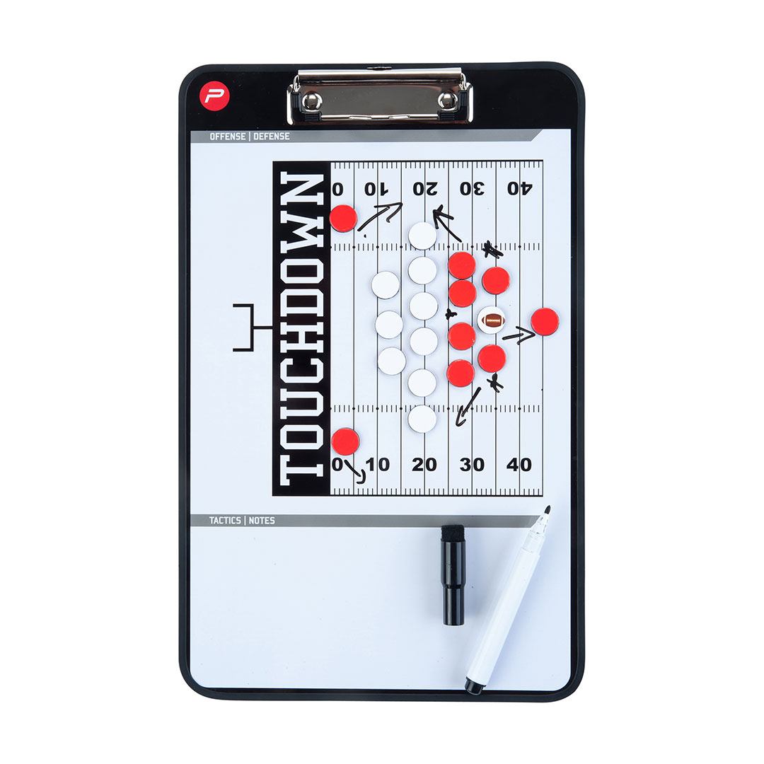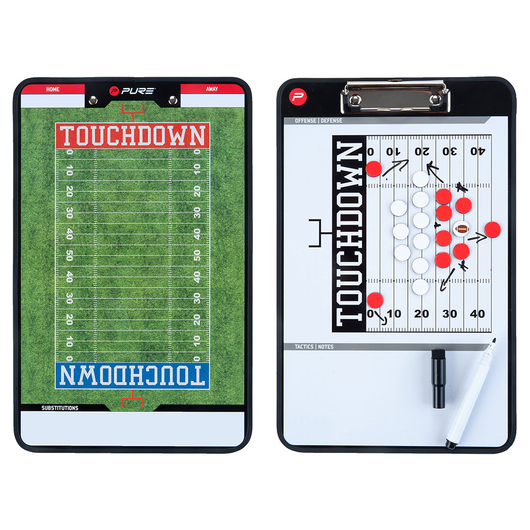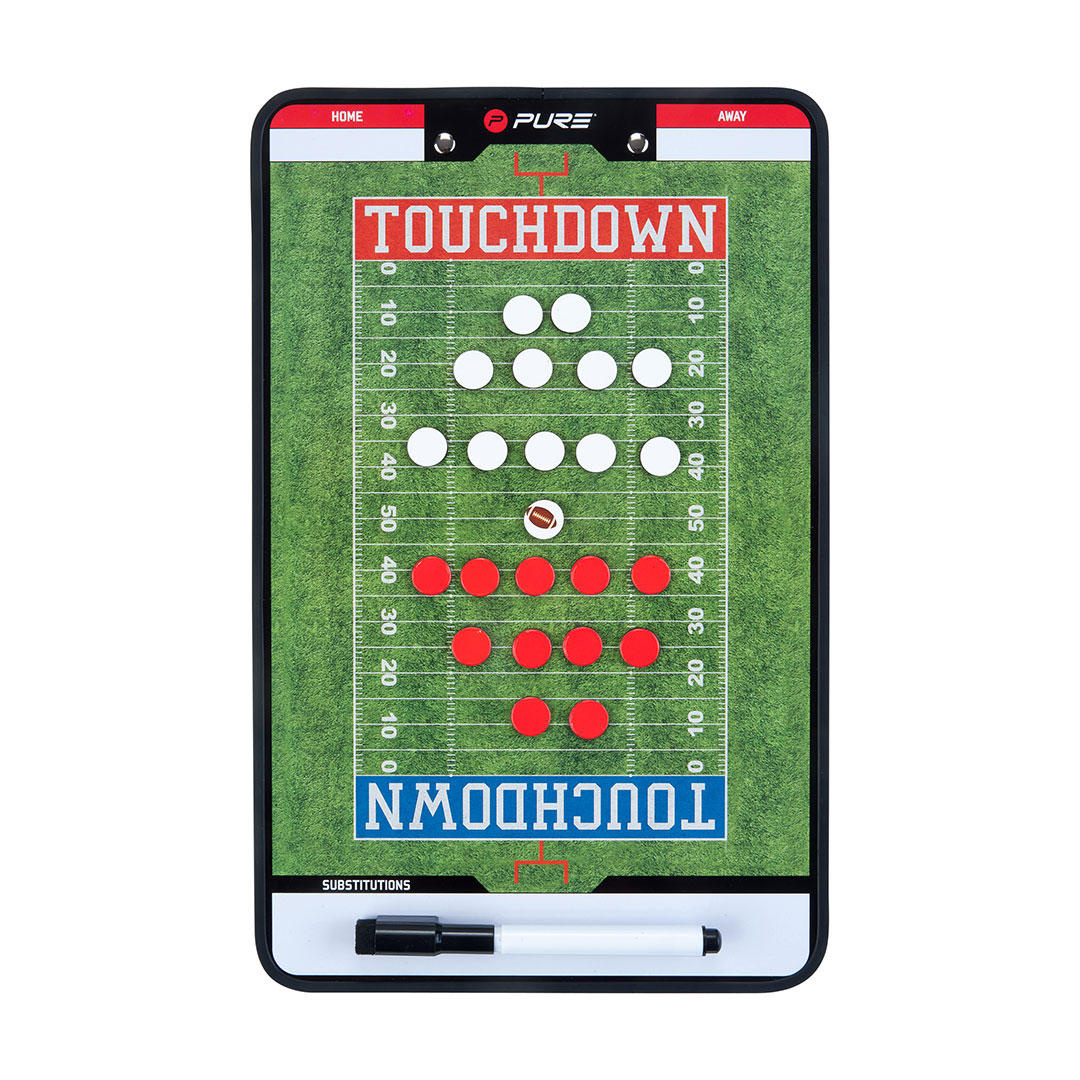 Das American Football-Trainingsboard ist ein doppelseitiges, magnetisches Trainingsboard, das für das Visualisieren von mannschaftstaktischen Abläufen und Spielzügen dient.
