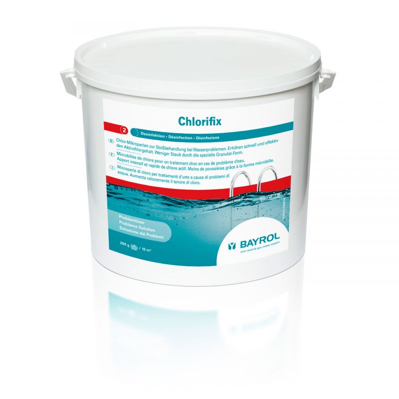 Schnelldesinfektion. Chlorifix ist ein schnell lösliches Chlorgranulat zur Stossbehandlung bei Wasserproblemen wie trübes oder veralgtes Wasser und wird direkt ins Wasser dosiert.