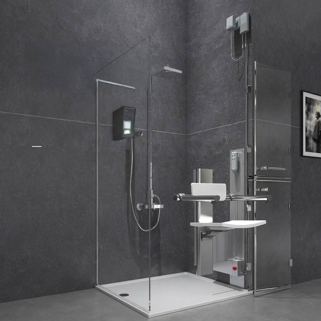 Der CareStyle elektrische Duschlift bietet eine komfortable und sichere Lösung für Menschen, die beim Duschen zusätzliche Unterstützung benötigen. Durch die intelligente Kombination aus elektrischer Höhenverstellung, drehbarem Sitz und kompakter Bauweise ermöglicht er ein einfaches und sicheres Ein- und Aussteigen in der Dusche.
