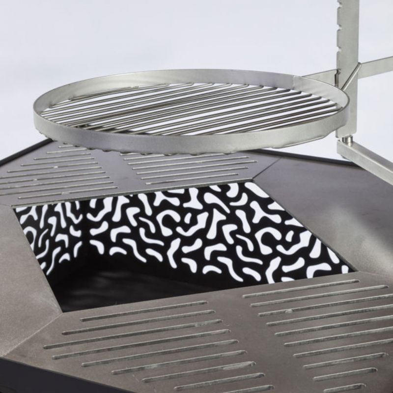 Doch der CUBE kann noch mehr: Neben seiner Funktion als stilvolle Feuerschale bietet er eine erstklassige Grill- & Kochfläche. Die 4-teilige Edelstahl-Grillplatte (5 mm dick) ermöglicht eine vielseitige Nutzung mit unterschiedlichen Hitzezonen – ideal für Grillliebhaber und Freunde der Outdoor-Küche. Ein höhenverstellbarer, schwenkbarer Edelstahl-Grillrost (ø 38 cm) sorgt für eine perfekte Zubereitung von Fleisch, Fisch oder Gemüse mit typischen Grillmarkierungen.