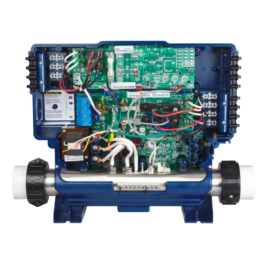 Das GL2000M3 Steuersystem von Balboa mit integrierter 3-kW-Heizung kann Folgendes steuern: 24-Stunden Zirkulationspumpe Zwei Massagepumpen, von denen eine oder sogar beide zweistufig sein können, wenn Sie keine Umwälzpumpe oder kein Gebläse haben Ein Gebläse Mehrere Tastaturen (einschließlich 2 Zusatztastaturen) Einen Ozongenerator Mehrfarbige synchronisierte Projektoren Dieses Kontrollsystem ist mit der M7-Technologie ausgestattet, die am Eingang und Ausgang der Heizung Temperatursensoren nutzt, um den Wasserdurchfluss zu messen. Diese macht sie viel zuverlässiger als Systeme mit Druckschalter/Druckwächter oder traditionellem Durchflussmesser.Die integrierte Heizung hat eine Leistung von 3 kW mit einem Heizelement aus Incoloy 800.