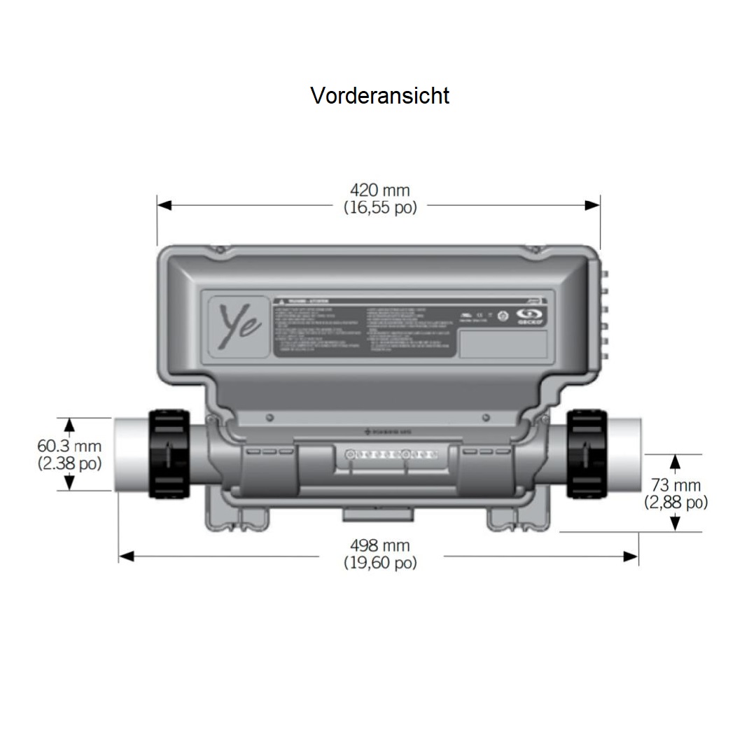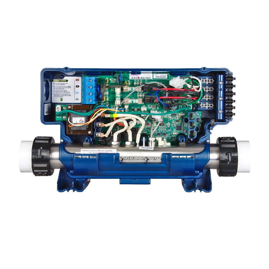 IN.THERM ist eine Zusatzheizung mit Leistung 2kW, die direkt an die Steuereinheit angeschlossen wird. Diese Heizung verfügt über eine lange Liste von Eigenschaften wie einen intern eingebauten Temperaturfühler und den neuen Durchflusssensor des Wassers, der dafür sorgt, dass der Druckschalter nicht mehr verwendet werden muss.Diese kompakte 2-kW-Heizung von Gecko wird an ein IN.XM- und IN.XM2-Steuerungssystem angeschlossen. Sie enthält eine eingebaute Temperatursonde und eine elektronische Wasserdurchflusserkennungsfunktion, ohne mechanische Teile.IN.THERM wurde gebaut um zu halten. Die Heizungsabdeckung sorgt dafür, dass kein Wasser in das Gerät eindringt. Die Einheit ist mit Epoxidharz ausgekleidet, welches die Einheit vor den durch die Strömung des Wassers verursachten Vibrationen schützt.Das intelligente, stylische Design von in.therm ist eine Klasse für sich. Der Heizung kann unbegrenzt ein- und ausgeschaltet werden, ohne dass die Komponenten verschleissen.In.therm ist in der Lage, mehrere Hochleistungs-Einstellungen zu haben, was bedeutet, dass es mit der höchsten Leistung NUR heizt, wenn es muss, was die Kosten des Heizelements reduziert und somit seine Lebensdauer erhöht. SchlauchanschlüsseDie IN-THERM-Heizung hat ein 2-Zoll-MBT-Aussengewinde, der gleiche Standard wie bei vielen Spa-Pumpen. Sie können es daher mit sogenannten "Pumpen"-Überwurfmuttern mit einem 78-mm-Ring an Ihre Schläuche anschliessen.