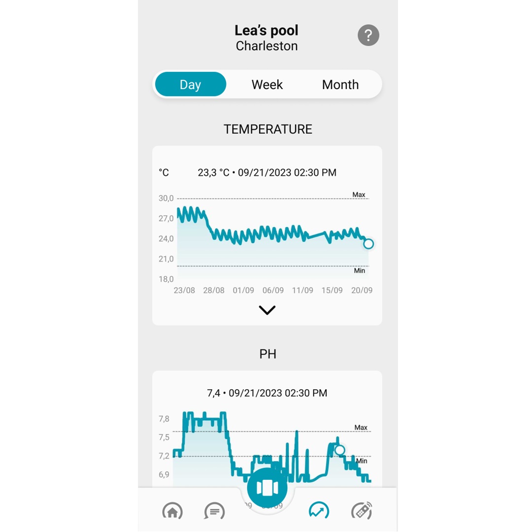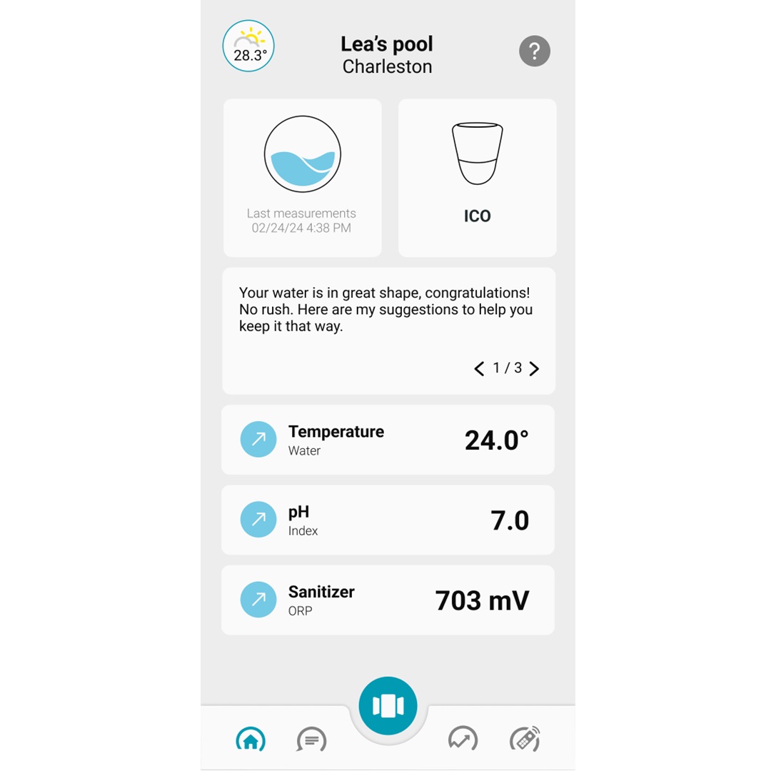 Laden Sie die ICO App für Ihr Smartphone herunter (erhältlich im App Store und bei Google Play), schalten Sie das Gerät ein und lassen Sie es ins Wasser Ihres Whirlpools fallen. Sobald Ihr Smartphone und ICO verbunden sind, erhalten Sie jederzeit Überblick auf Wassertemperatur, pH-Wert und Desinfektion des Wassers sowie Ihr lokales Wetter und entsprechende Handlungsempfehlungen.