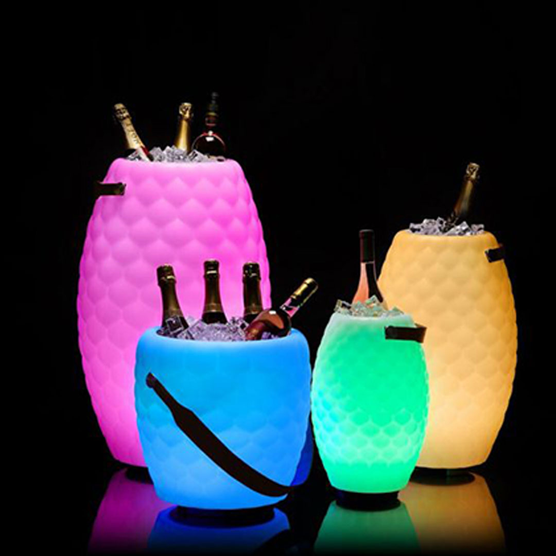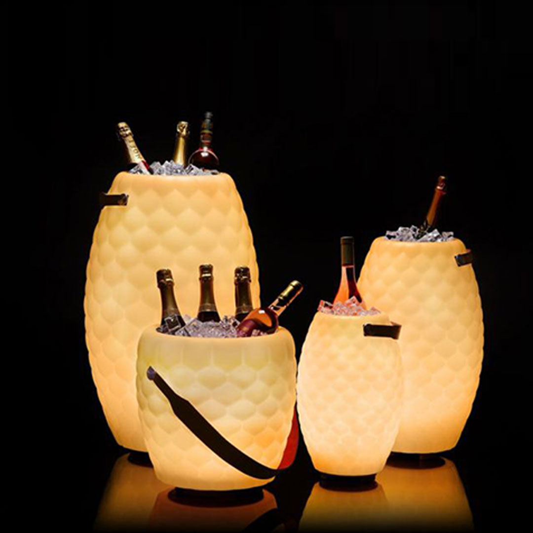 The JOOULY Bowl Ltd. ist eine stylisch designte LED-Leuchte mit 4 Farbwechsel Varianten, 9 verschiedenen Lichtfarben und einem integrierten Bluetooth Speaker, sowie einem Behälter der mit Eis gefüllt als Sektkühler für mehrere Flaschen oder als Vase verwendet werden kann. The JOOULY Bowl Ltd. ist sowohl per APP als auch mit Fernbedienung steuerbar.