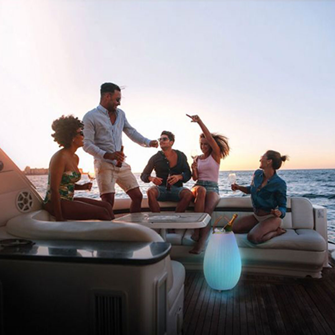 stylische LED-Leuchte, Bluetooth Lautsprecher & Getränkekühler - ein 3in1 Gadget