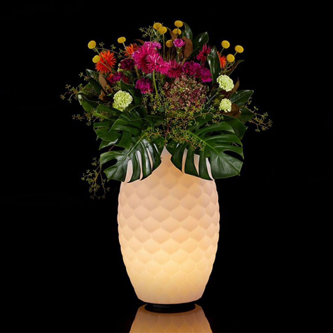 The JOOULY LTD 35 ist eine stylische LED-Leuchte 9 verschiedenen warmen Lichtfarben 4 Farbwechsel Varianten, einem integrierten Bluetooth Lautsprecher, sowie einem Behälter der als Getränkekühler oder als Leuchtvase verwendet werden kann. Die JOOULY LTD 35 ist sowohl per APP als auch mit Fernbedienung steuerbar.