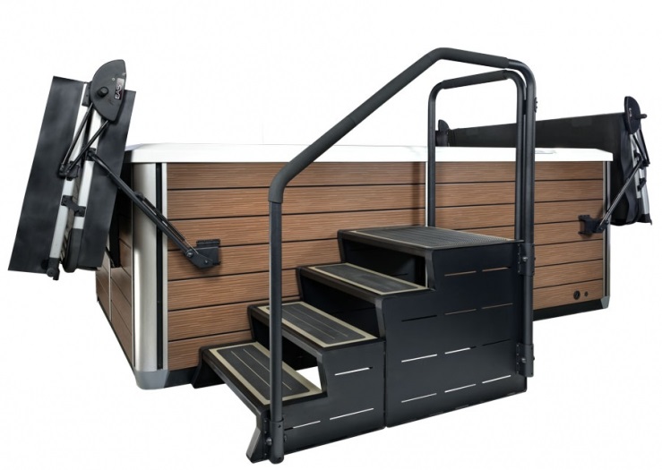 Eine attraktive und zuverlässige SwimSpa Treppe mit 3 Stufen und Haltegriff für sicheren Einstieg.