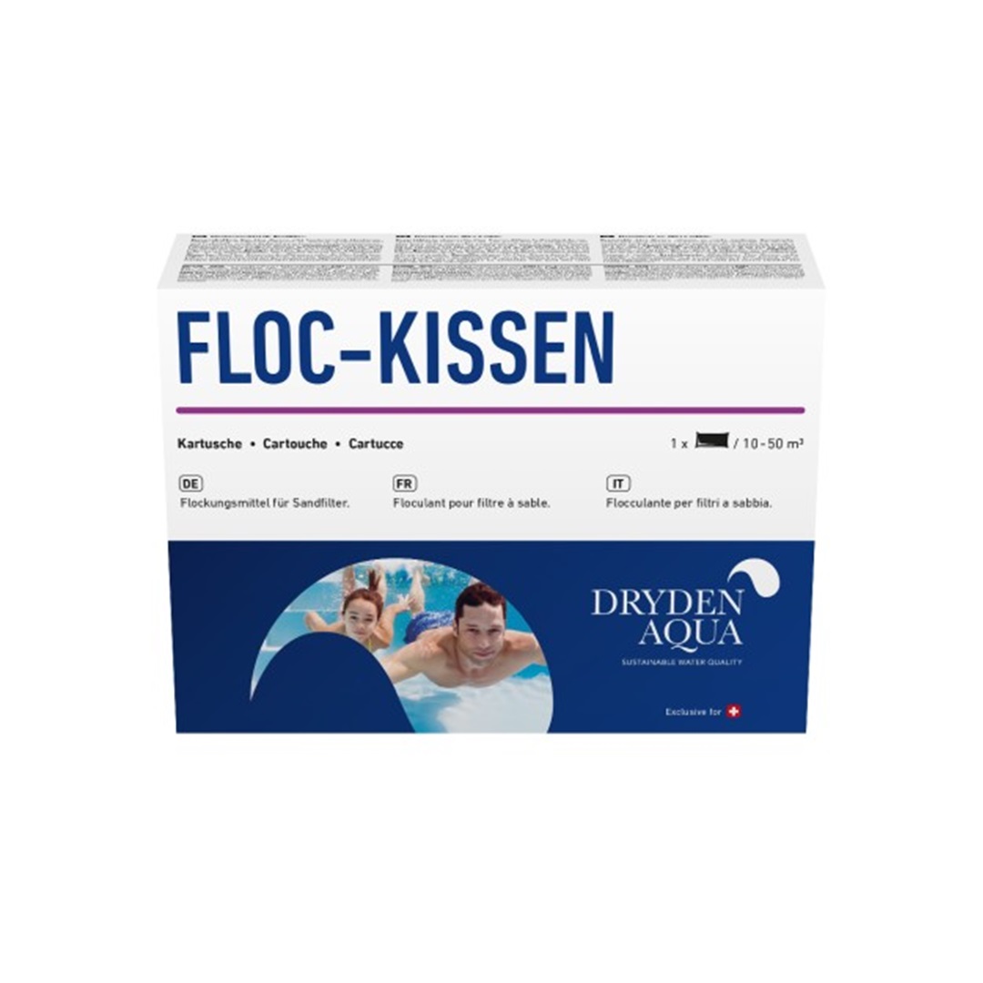 Das in den Floc-Kissen enthaltene Flockmittel wird kontinuierlich über mehrere Tage an das Wasser abgegeben und bildet mit feinsten, normalerweise nicht filtrierbaren Schmutzteilchen grosse Flocken. Diese Flocken werden bei laufender Filteranlage auf dem Sandfilter zurückgehalten und beim Rückspülen beseitigt. Das Wasser wird kristallklar. Enthält Aluminiumsulfat.