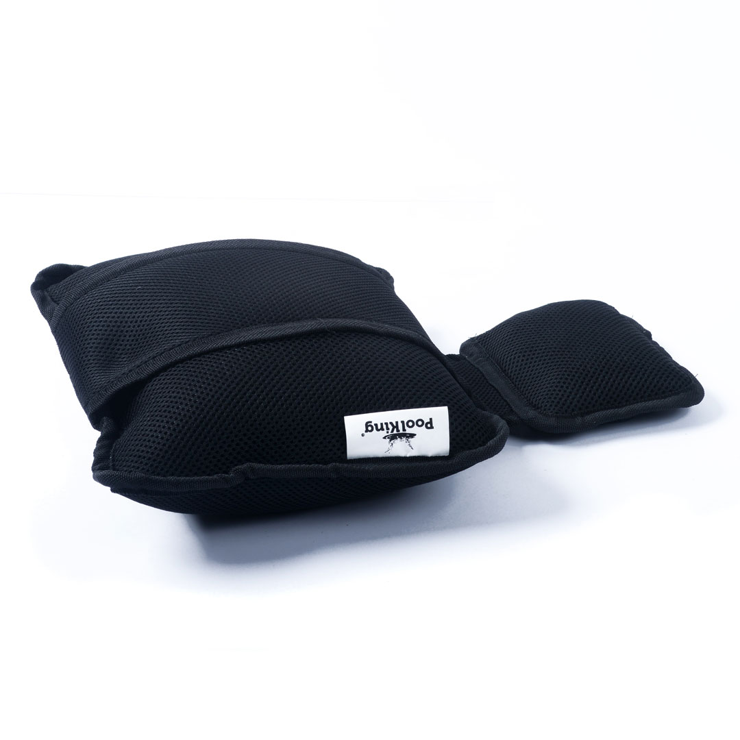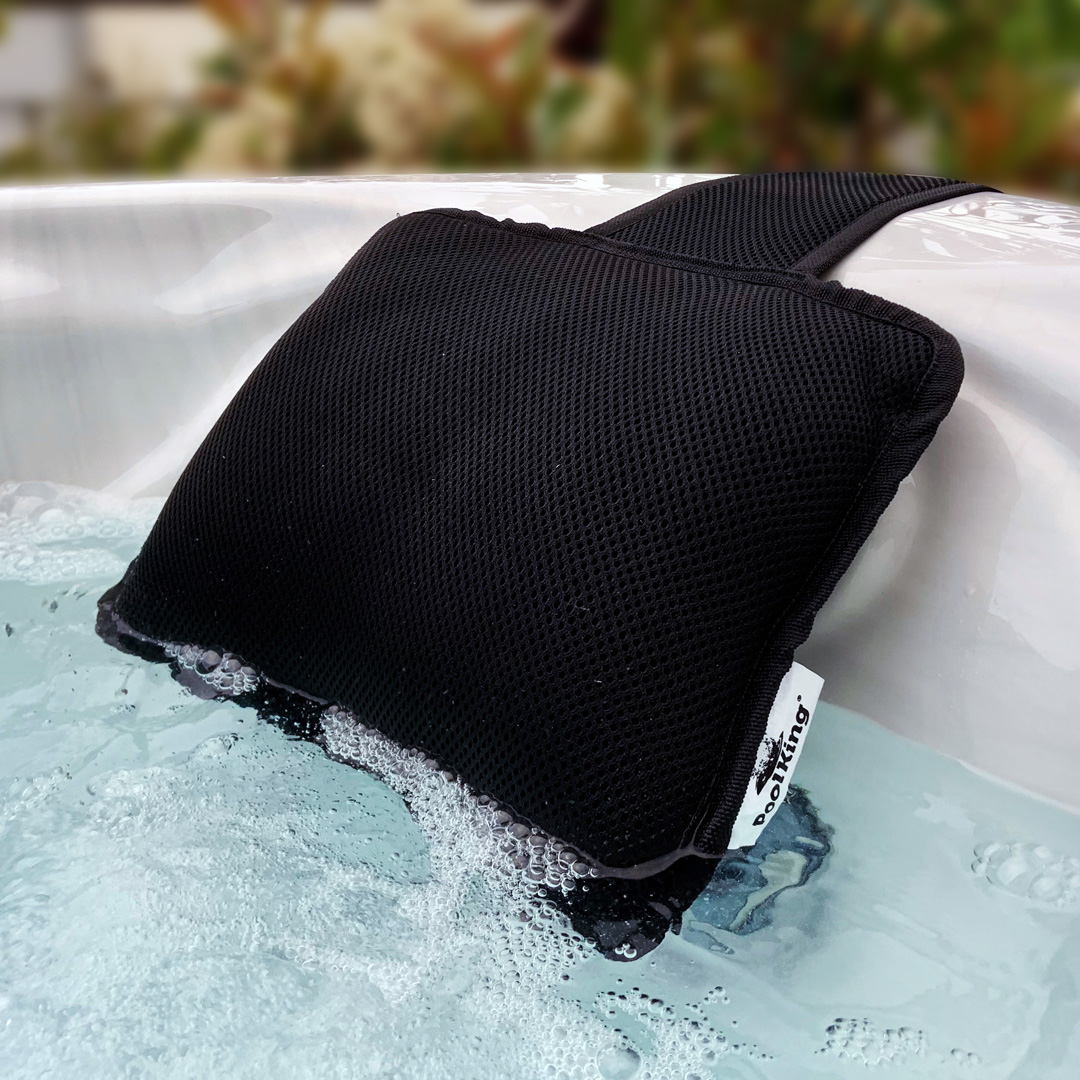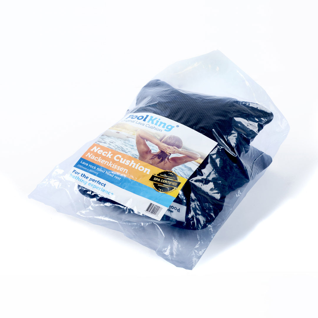 Die Lavastein-Füllung im kleinen Kissen sorgt für eine bequeme Liege- oder Sitzposition, indem es dem grossen Kissen im Wasser einen festen Halt gibt.