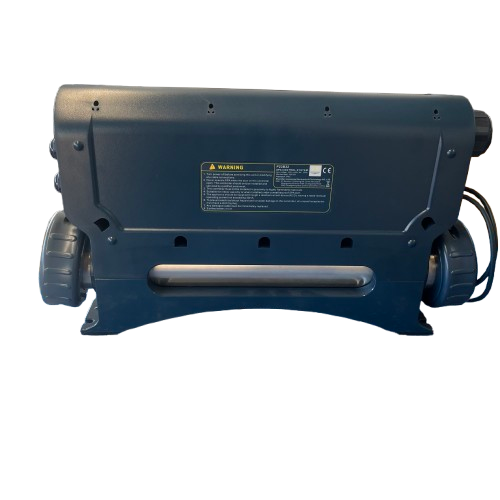 Steuereinheit mit 3kW 825 Incoloy HeizungDas kompakte Steuerungssystem Balboa BP200 UX ist ideal für die Installation auf kleinem Raum, da es keine integrierte Heizung wie andere Systeme der Marke Balboa hat.Dieses Kontrollsystem ist mit der M7-Technologie ausgestattet, die am Einlass und Auslass der Heizung Temperatursensoren nutzt, um den Wasserdurchfluss zu messen. Diese macht sie viel zuverlässiger als Systeme mit Druckschalter/Druckwächter oder traditionellem Durchflussmesser. Das BP200UX Steuersystem mit Heizung von Balboa kann Folgendes steuern: Entweder eine 24-Stunden-Umwälzpumpe und eine Pumpe 1 einstufig, oder eine Pumpe 1 zweistufig Pumpe 2 einstufig oder Gebläse Einen Ozongenerator Einen Projektor (max. 1 A) Ein Audiosystem Separat zu erwerbende Erweiterungskarten ermöglichen das Hinzufügen einer zweiten Pumpe oder eines Gebläses. Beachten Sie, dass diese Erweiterungskarten nur mit dem BP200 UX und nicht mit anderen Balboa-Systemen (einschließlich BP200 G1) kompatibel sind.Das BP200 UX ist nicht mit Zusatztastaturen kompatibel, die keinen Bildschirm haben.Die Steuerung kann auch aus der Ferne mit Ihrem Smartphone verwaltet werden, indem Sie ein WiFi-Modul hinzufügen.