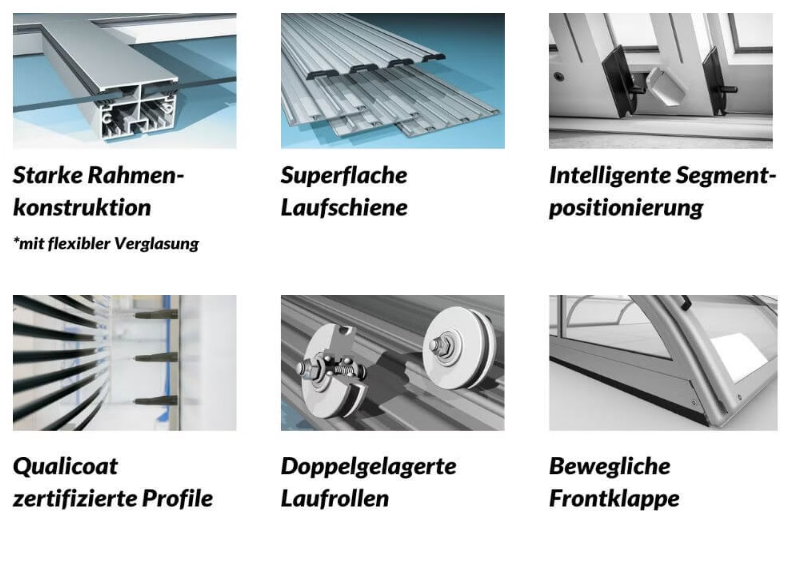 - Seitliche Schiebetüre: Individuell platzierbar, erleichtert den Zugang zum Pool.
