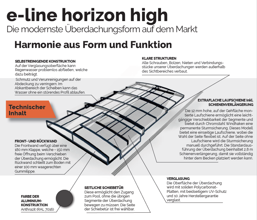 e-line horizon high – Hochwertige Schwimmbadüberdachung für mehr Sicherheit & Komfort
