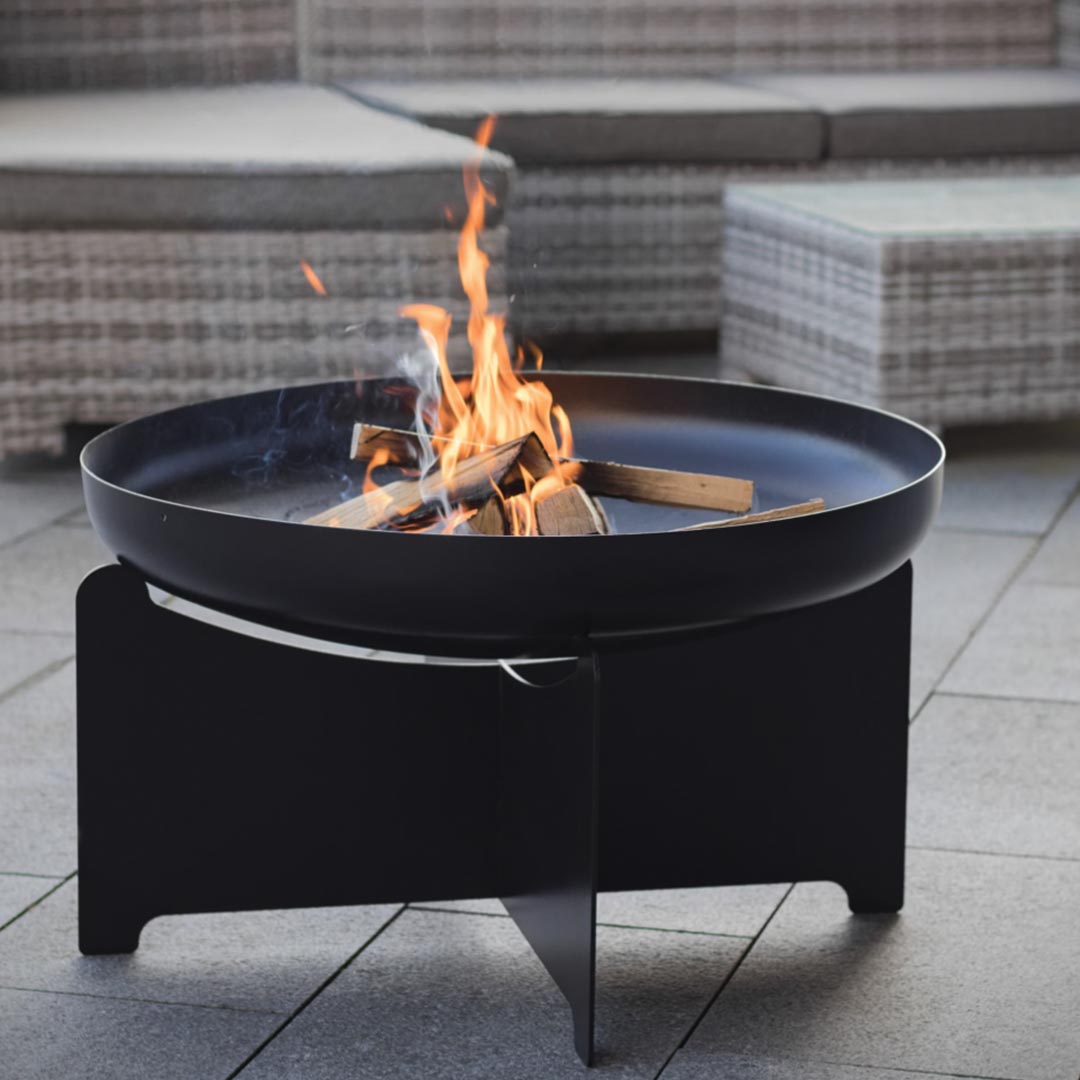 Moderne und stylische Ausführung der klassischen Feuerschale mit einem Durchmesser von 50cm. Seien sie up to date mit dem zeitlosen und innovativen Design der Feuerschale X-Serie. Verwandeln sie ihren Gartensitzplatz oder Terrasse in einen stimmungsvollen Ort. Die Feuerschale ist mit einer hochtemperaturfesten Farbe lackiert. Das 2-teilige Untergestell lässt sich bei Bedarf einfach zusammenlegen und somit mit geringem Platzbedarf verstauen. Das x-förmige Untergestell kann auf jedem Untergrund aufgestellt werden.