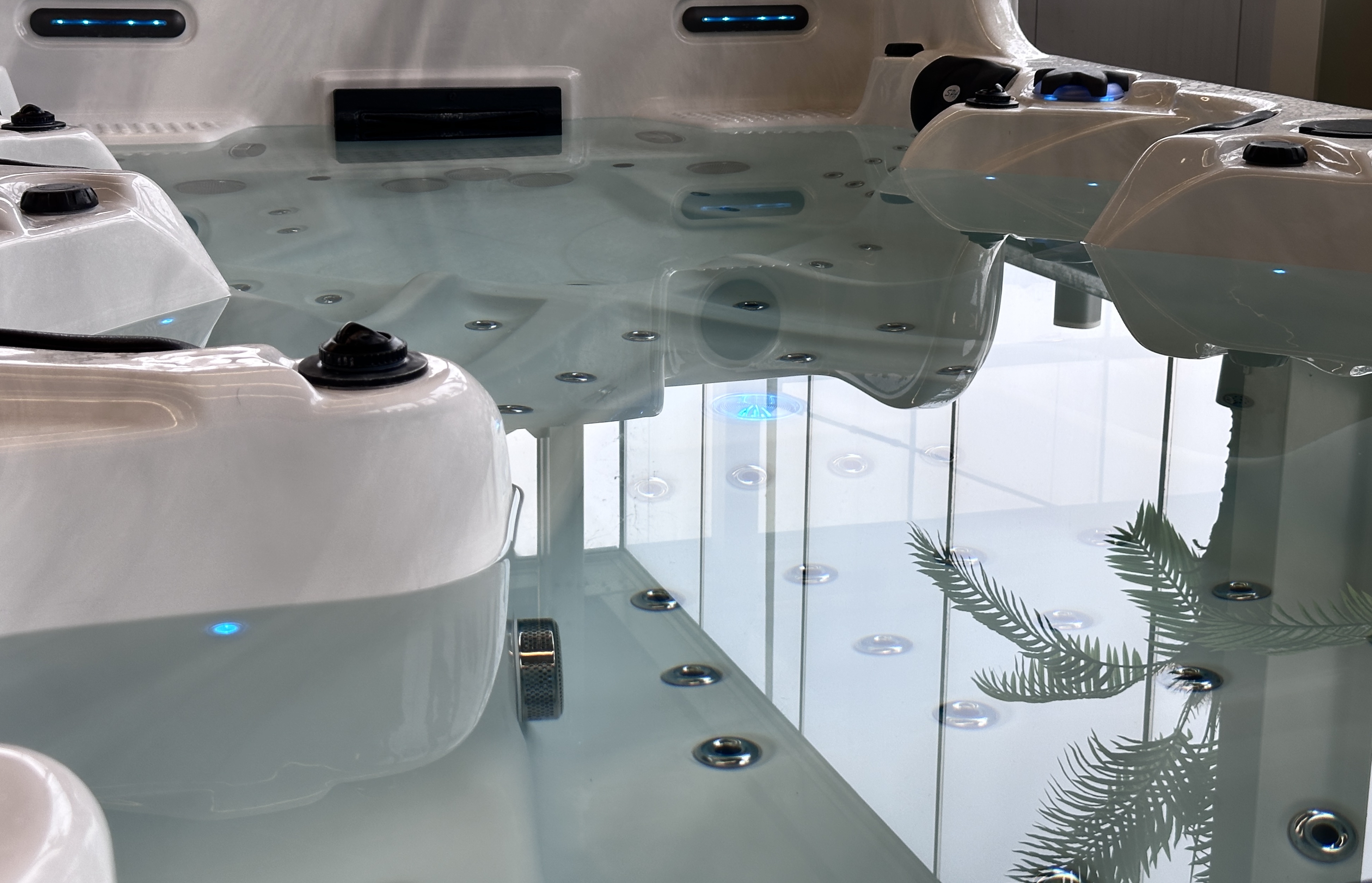 Swimspas vereinen die Vorteile von Pool und Whirlpool. Sie ermöglichen sportliches Schwimmen auf kleinem Raum und gleichzeitig erholsame Hydrotherapie. Im Competence Center können verschiedene Swimspa-Modelle hinsichtlich Ausstattung, Grösse und Technik direkt verglichen und getestet werden.